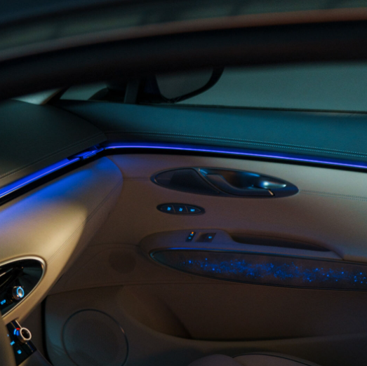 실내 디자인은 GV70 전기차의 가장 큰 매력 중 하나입니다. 크롬 마감과 앰비언트 라이트는 고급스러움을 더욱 강조하며, 특히 헤드라이너의 컬러 매치가 돋보입니다.